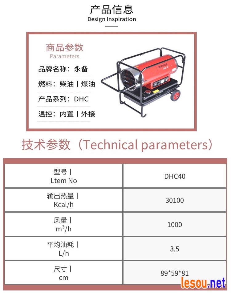 上海永备热风机DHC-40说明书机型应用:DHC 可以对通风良好的房间加温;对于大型房间,可以用几台DHC联合加温;如:农业育雏、保育